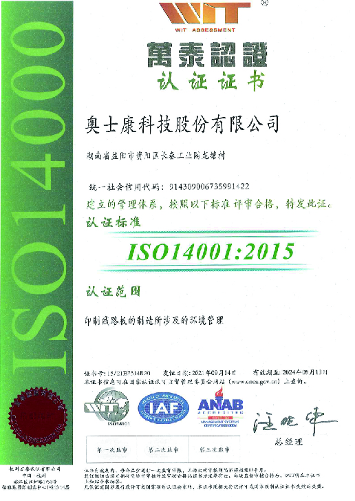 ISO14001 (有效期至2024年9月13日)
