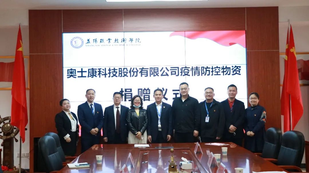 儀式上,益陽職院黨委書記胡康平代表校方對公司的暖心之舉表示衷心感謝,并表示將利用好這批物資,繼續嚴格落實疫情防控各項要求,切實保障師生安全健康。同時,進一步加強與奧士康的合作,深化教育教學改革,促進校企深度融合、互動。