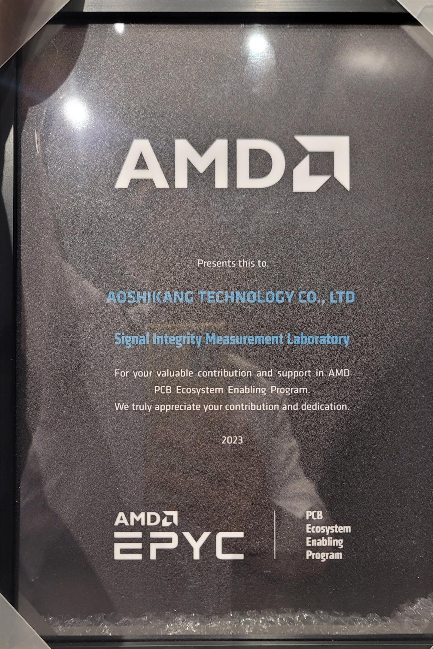 PEEP,即PCB Ecosystem Enabling Program,在該項目進程中,AMD對奧士康高效響應的合作表現及技術能力給予了高度評價,并授予奧士康“PEEP項目參與價值貢獻獎”、“實驗室信號完整性測試認證獎”兩項榮譽。